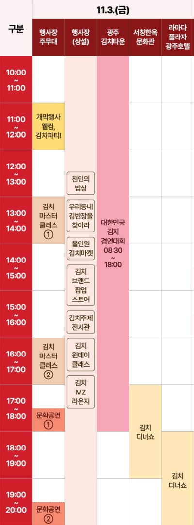 광주김치축제 일정표