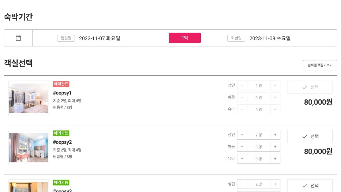 떠나요 닷컴에 들어가셔서, 가고 싶은 지역을 고르시고, 검색을 통해 추천펜션을 고르시거나 가격순대로 설정하셔서 숙소를 고르실수 있습니다. 숙소를 선택한 후, 숙박기간과 객실종류를 선택합니다.