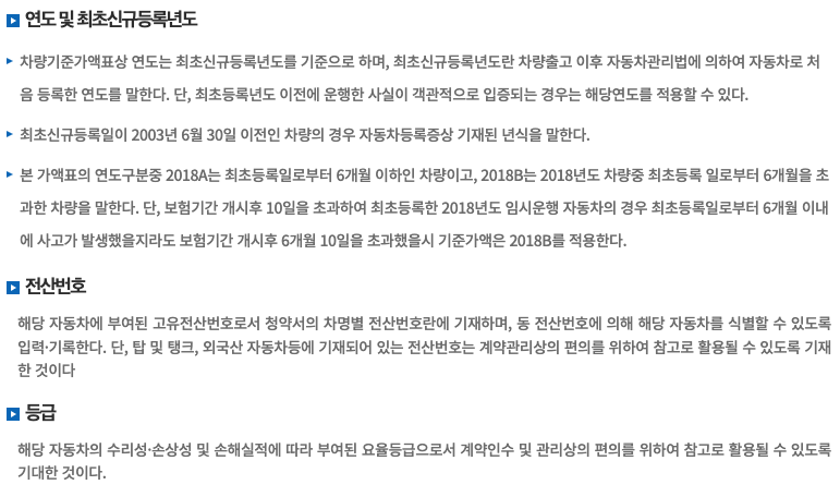 차량가액으로 내가 기준이 되는지 확인할 상황이 많습니다. 내가 차를 구매한 금액이 아닙니다.