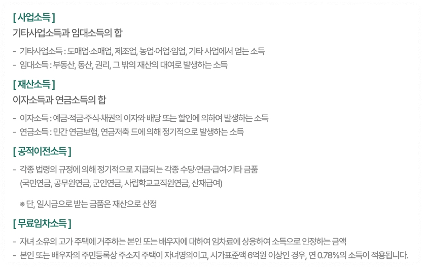 = 1) 소득평가액 + 2) 재산의 소득환산액